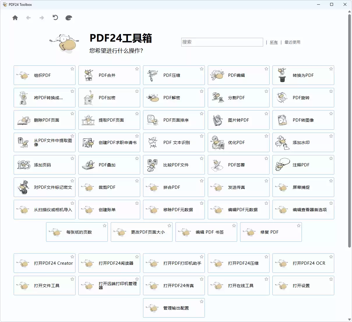 PDF24 Creator 是一款功能非常丰富的PDF软件,他有在线版和桌面版。支持各种PDF文件编辑操作,支持多种打印任务,还有内置的PDF阅读,和各种PDF文件转换,还有压缩,文本识别图文叠加等等等非常丰富的功能