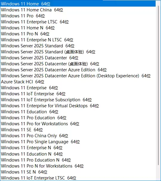 2.包含7大基准版本(家庭版、家庭中文版、专业版、家庭版N、专业版N、企业版 LTSC 2024、企业版 LTSC N 2024)和转制得到的18个版本,6个服务器版本和Azure Stack HCI。