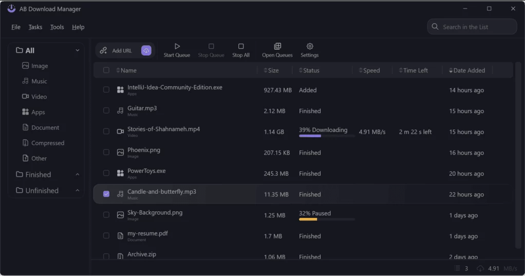 AB Manager 是一款简单实用的多线程下载管理器,可以作为IDM的一定程度上的替代品。