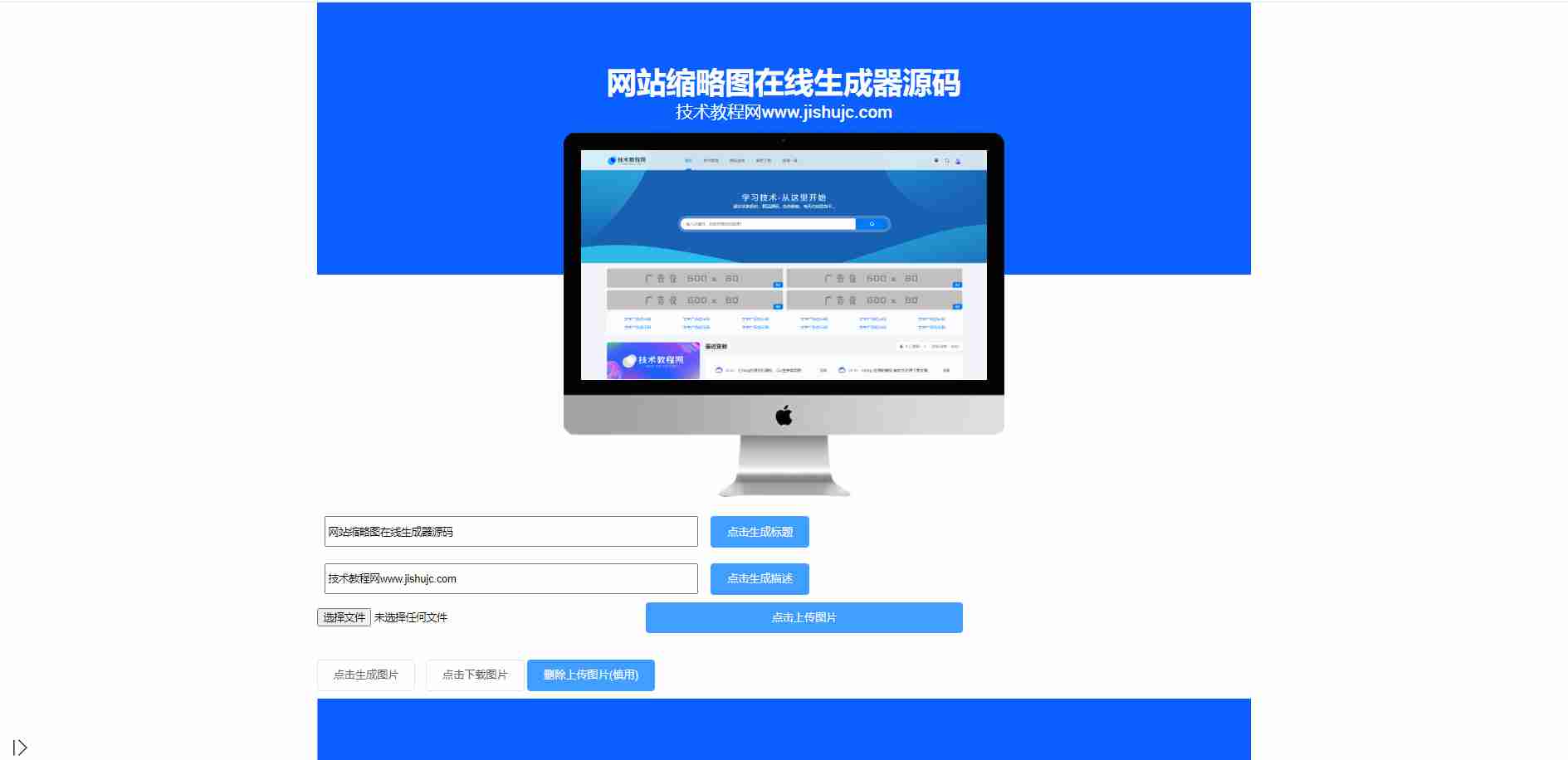 网站缩略图生成源码是一个强大实用的免费网站缩略图在线生成服务站,你只需上传网站截图,它能够在短短的几秒钟内,即可生成出高大尚的美化缩略图。