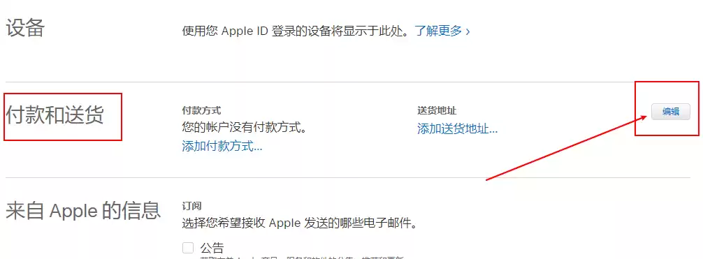 找到付款和送货信息,然后点击右边的编辑按钮!