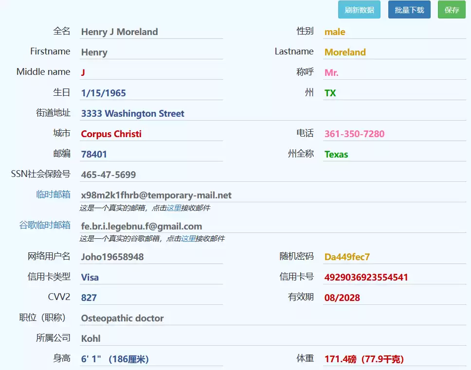 - 美国地址信息生成网站:www.haoweichi.com