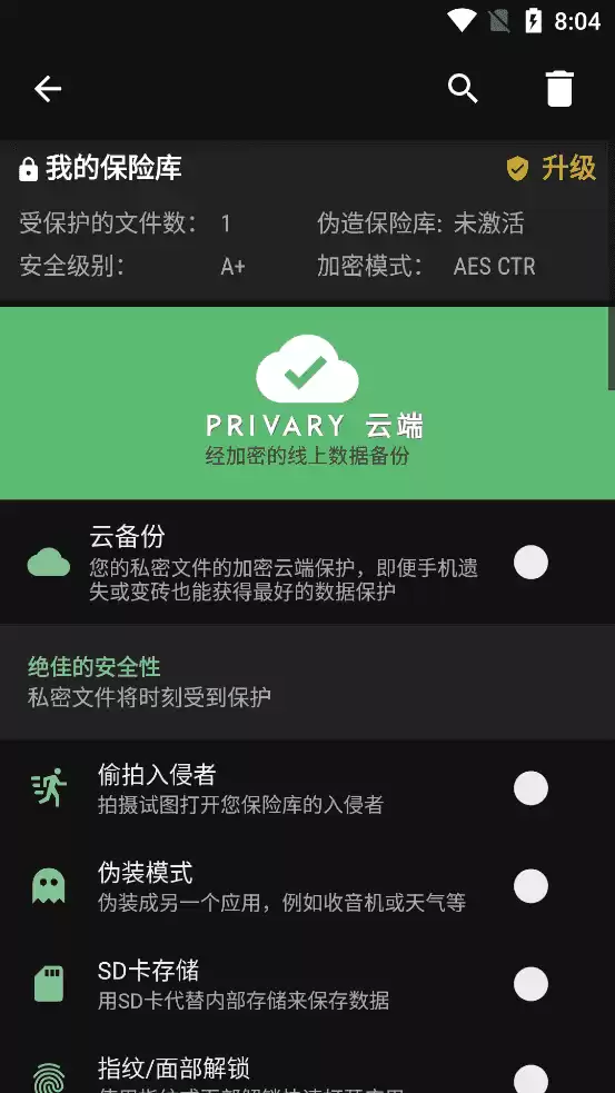 Privary通过AES CTR加密来保护和隐藏你的私人文件,照片和视频。 只有你自己可以看到,所有其他人都看不到。