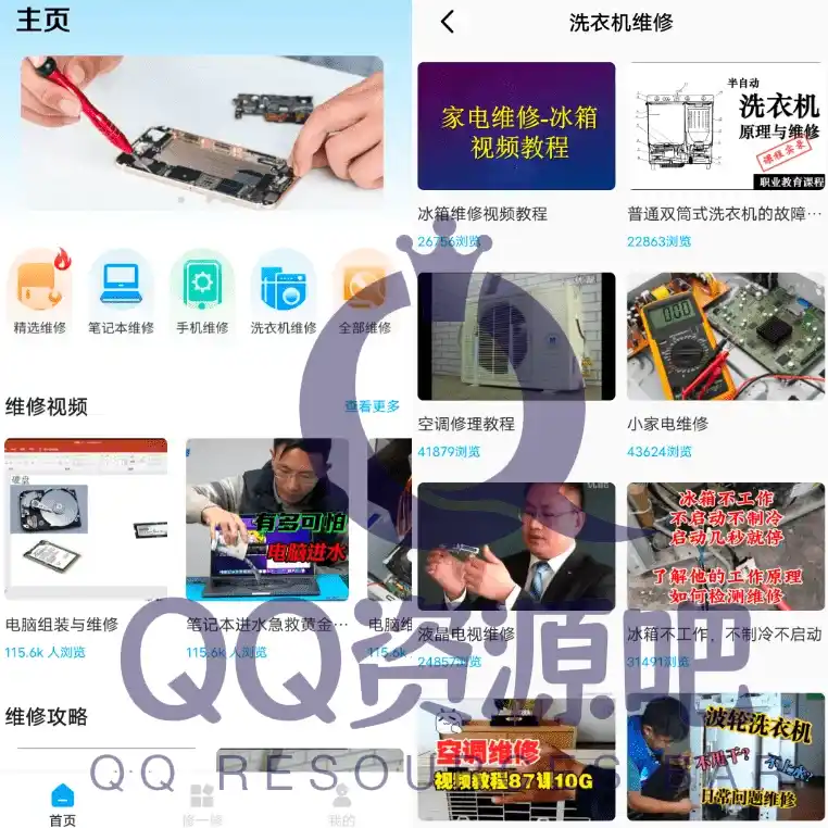 平台全面覆盖了手机维修、笔记本维修、洗衣机维修等多种日常数码与家电品类的维修内容,能够充分满足用户多样化的技术学习需求,让查找各类专业维修教程变得简单高效。